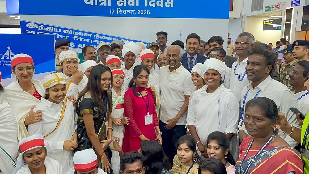 யாத்ரி சேவா திவாஸ் நாளையொட்டி கோவை விமான நிலையத்தில் அவிநாசிலிங்கம் கல்லூரி மாணவிகள் படுகர் நடனமாடி பயணிகளை வரவேற்றனர். அப்போது, சென்னையிலிருந்து வந்த நடிகர் ரஜினிகாந்த் உடன் குழு புகைப்படம் எடுத்துக்கொண்டனர்.