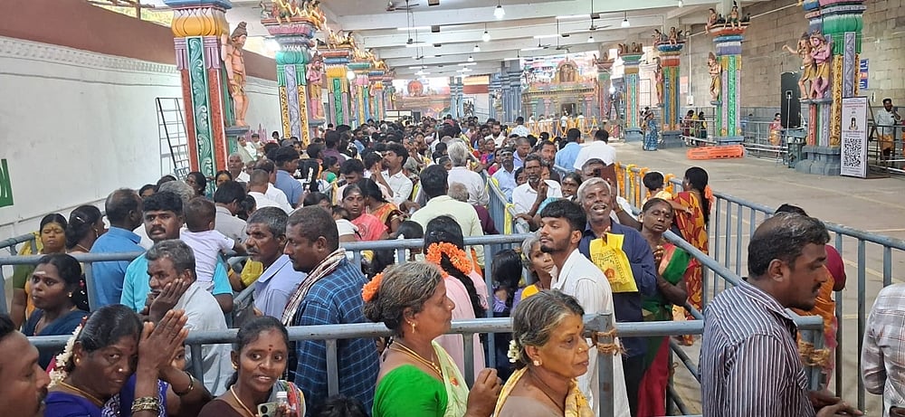அதிகாலை முதல் வரிசையில் சென்று பக்தர்கள் தரிசனம் செய்கின்றனர்.