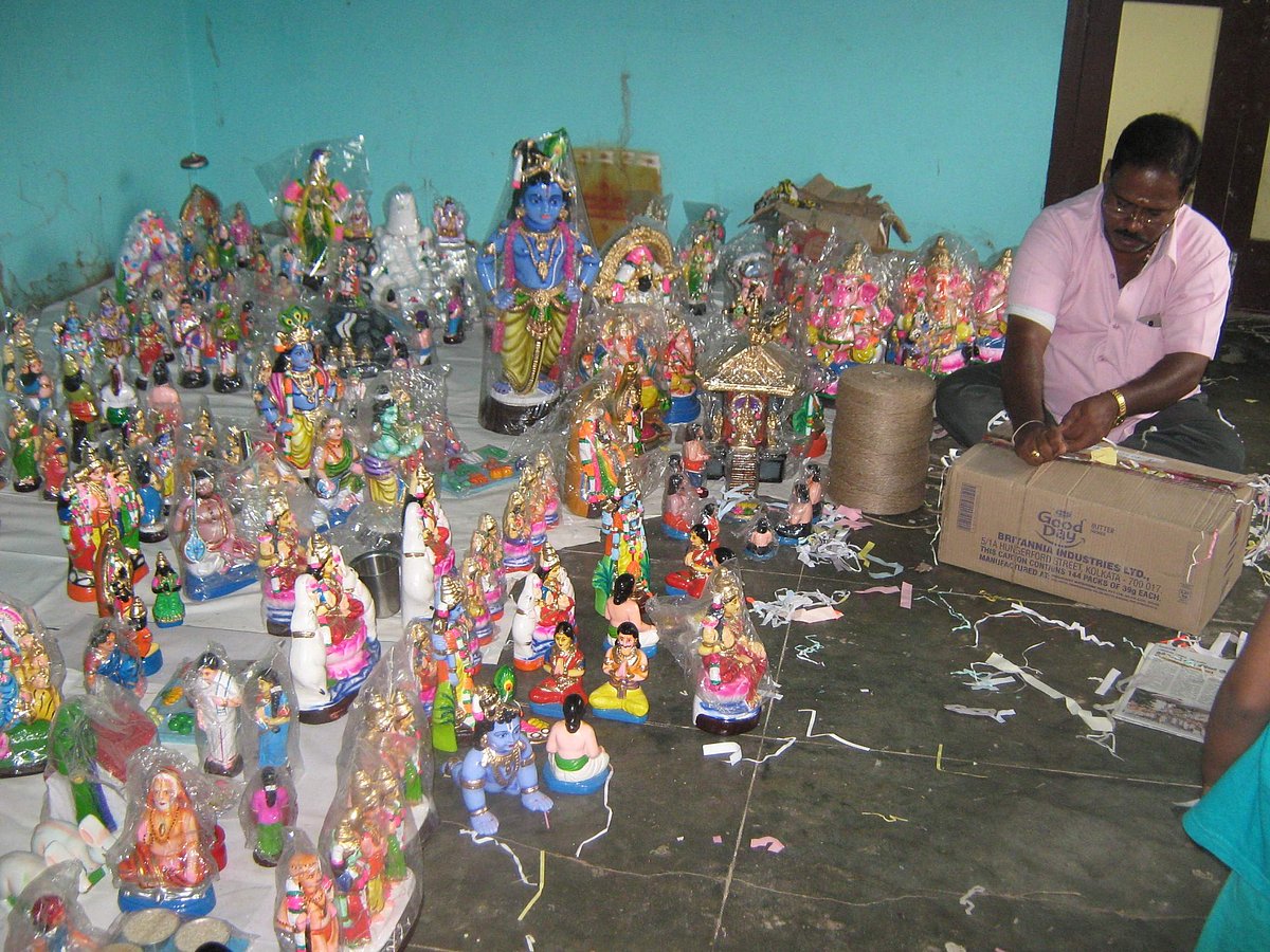 செங்கல்பட்டு அக்டோபர் 2: நவராத்திரி கொலுவிற்கு சில தினங்களே உள்ள நிலையில் செங்கல்பட்டு பகுதியில் பொம்மை தயாரிப்பு மற்றும் விற்பனை சுறுசுறுப்பு அடைந்துள்ளது. நவராத்திரி விழா நாள்களில் வீடுகளில் பாரம்பரியமாக பொம்மை கொலு வைப்பதை பல குடும்பத்தினர் இன்னும் மறந்து விடவில்லை. வாடகை வீடாக இருந்தாலும் இட நெருக்கடியிருந்தாலும் நவராத்திரி கொலு வைப்பதற்கு சிறிய இடத்தையாவது ஒதுக்கி வைத்து பாரம்பரியத்தை காப்பாற்றி வருகின்றனர். தங்கள் கற்பனைகளுக்கேற்ப கொலுவில் பல்வேறு பொம்மைகளை நிறுத்தி வைக்கின்றனர்.