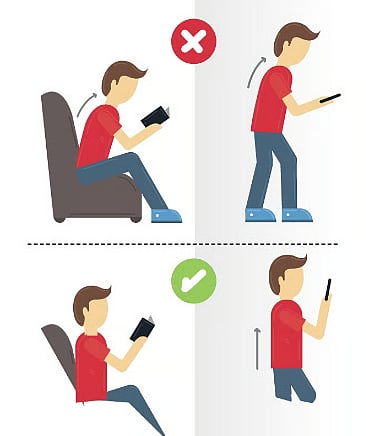ஸ்மார்ட்போன்கள், மடிக்கணினிகளைத் தொடர்ந்து பயன்படுத்தும்போது கழுத்து வளைகிறது. அதாவது முதுகெலும்பு வளைகிறது. இதனையே 'டெக்ஸ்ட் நெக் சின்ட்ரோம்'(text neck syndrome) அல்லது 'டெக் நெக் சின்ட்ரோம்'(tech neck syndrome) என்று கூறுகிறோம். குழந்தைகள் மற்றும் இளம்வயதினருக்கு இது தற்போது அதிகரித்து வருகிறது. கழுத்து அதிகமாக முன்னோக்கி வளைந்திருப்பதே இந்த நிலையாகும்.