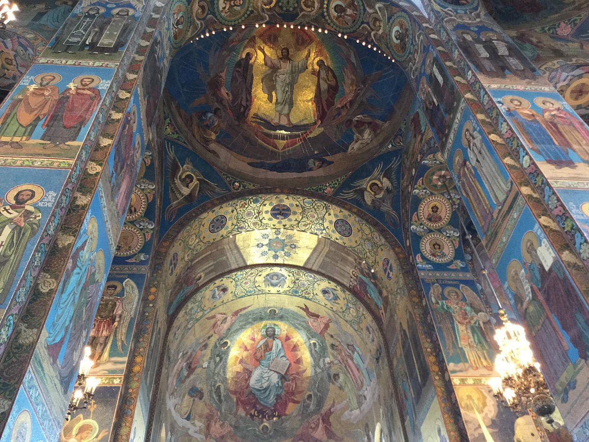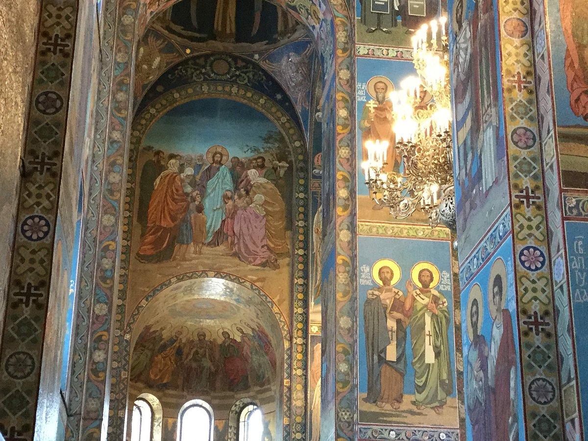 செயிண்ட் பீட்டர்ஸ்பர்க் நகரத்தின் உச்சபட்சக் கவர்ச்சியாகவே விளங்கும் அந்த ஆலயத்திற்குள் – திட்டிவாசல் போன்ற ஒரு சிறு கதவின் வழி உள்ளே சென்றோம். இயேசுவை மீட்பராகச் சித்திரிக்கும் வண்ண ஓவிங்களாலும், புனிதர்கள் மற்றும் தேவதைகளின் உருவச் சித்திரிப்புக்களாலும் ஆலய உட்புறச் சுவர்களும், மேற்கூரைகளும் நிறைந்து கிடந்தன; ஆங்காங்கே பல நிறம் கொண்ட பெல்ஜியம் கண்ணாடிப் பளபளப்புக்களும் காணத் திகட்டாத பேரழகோடு பொலிந்து கொண்டிருந்தன. நாங்கள் சென்ற பிற ஆலயங்களை விடவும் இதைக் காணவரும் மக்கள் கூட்டமும் மிகுதியாகவே இருந்தது. பல்வேறு காலகட்டங்களில் பலவகையான பாதிப்புக்களுக்கு ஆளானபோதும் இன்னும் கூடக் கலையழகு குன்றாமலிருக்கும் அந்த இடத்தை மனம் கொண்ட வரை ரசித்துப் பார்த்த பிறகு மதிய உணவுக்காகச் சென்றோம்.