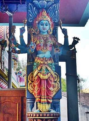 ஆறு அடி உயரத்திற்கும் உயரமாக அம்மன் நிசும்பசூதனி காட்சியளிக்கிறாள். அன்னை, தன் கரங்களில் பல படைக்கலன்களைக் கொண்டுள்ளார். தீச்சுடர் போல் கேசம், முகத்தில் உறுதி, அசுரர்களை அழிக்க வேண்டும் என்னும் சீற்றம், வலது காதில் பிரேத குண்டலம், இடக்காதில் பெரிய குழை, சதை வற்றிய உடல், திண்மையான நீண்டு தொங்கும் மார்பகங்கள், அவற்றைச் சுற்றிலும் கச்சாகக் காணப்படுகின்ற பாம்பு, உடலில் மண்டை ஓடுகள், எட்டுக் கரங்களிலும் ஆயுதங்களைக் கொண்டுள்ள அம்மனின் ஓர் இடக்கரம் காலின் கீழ் கிடக்கும் அசுரரைக் காண்பிக்கிறது.