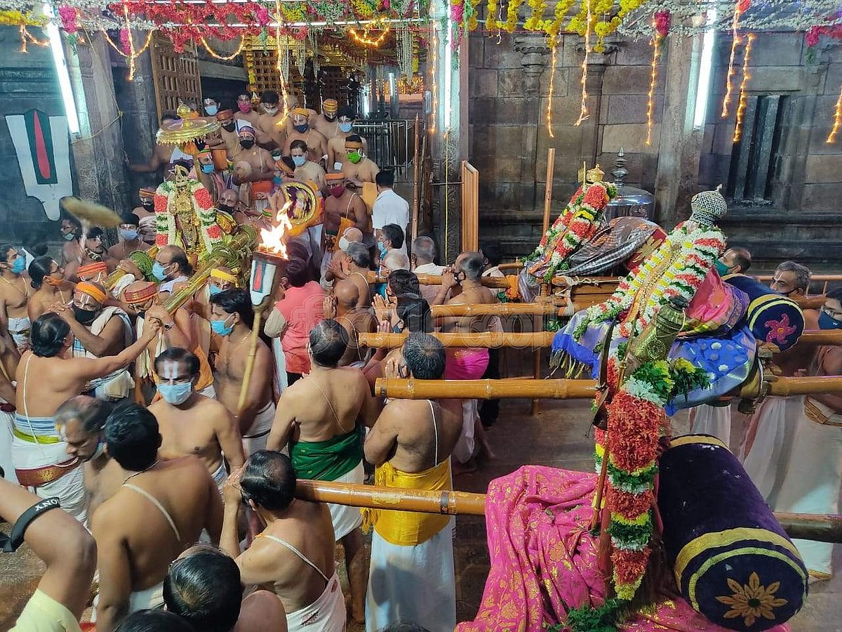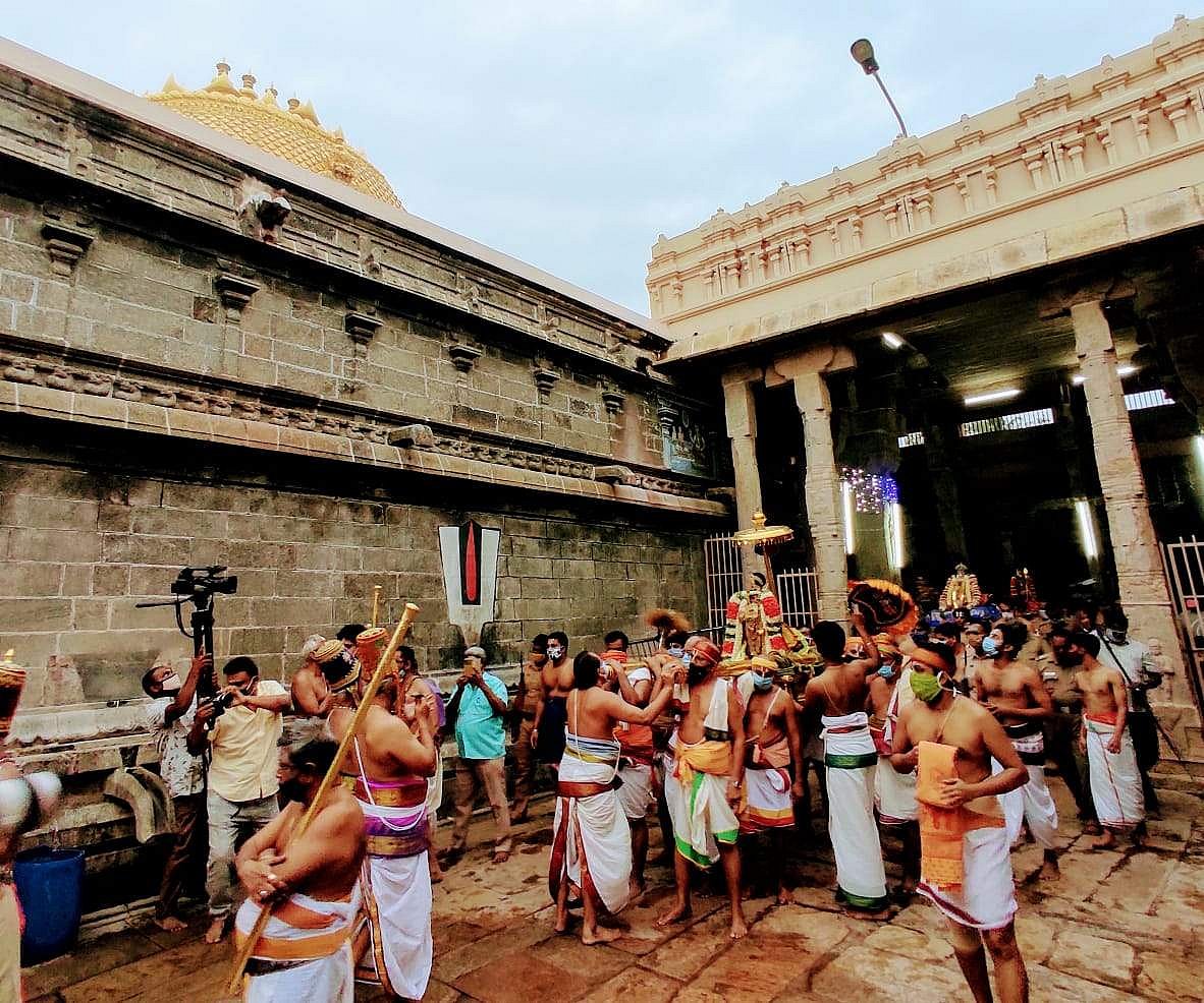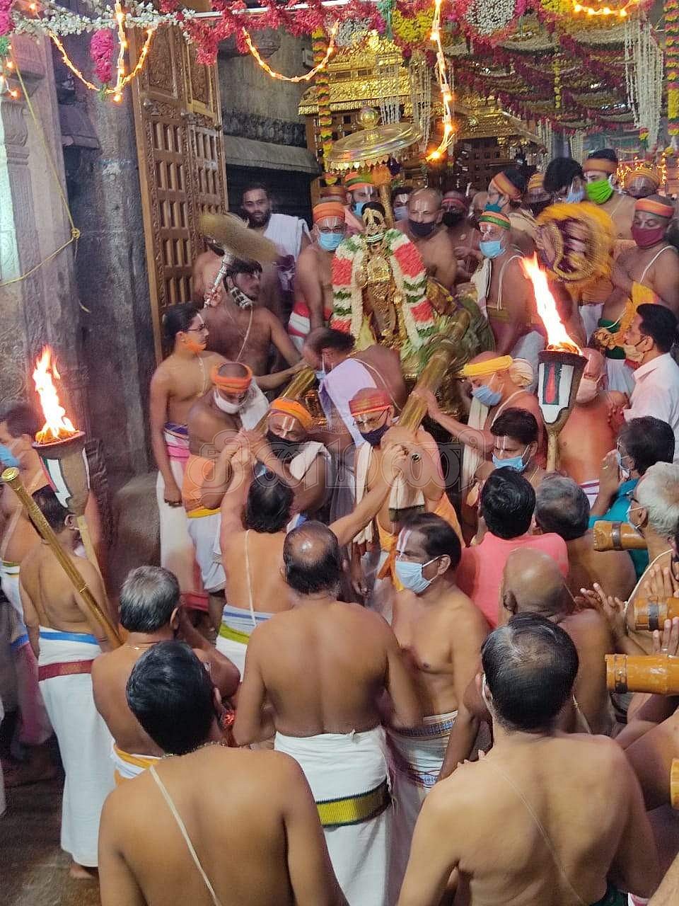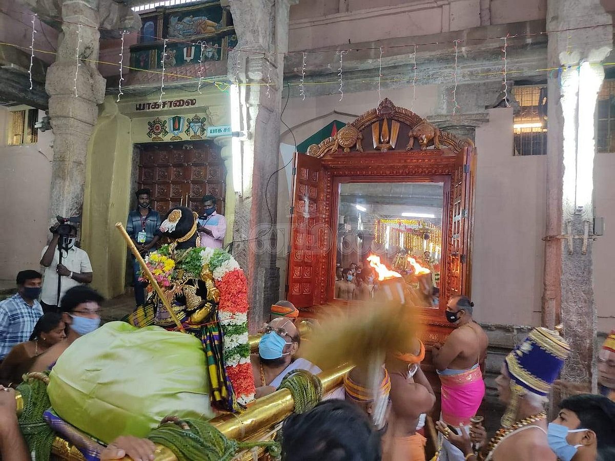 தொடா்ந்து காலை 8 மணி முதல் ஏராளமான பக்தா்கள் வரிசையில் நின்று தரிசித்து வருகின்றனர். இரவு 8 மணிக்கு மேல் பக்தா்களுக்கு அனுமதியில்லை. பக்தா்கள் முகக் கவசம் அணிந்து, சமூக இடைவெளியுடன் தரிசனம் செய்து வருகின்றனர்.