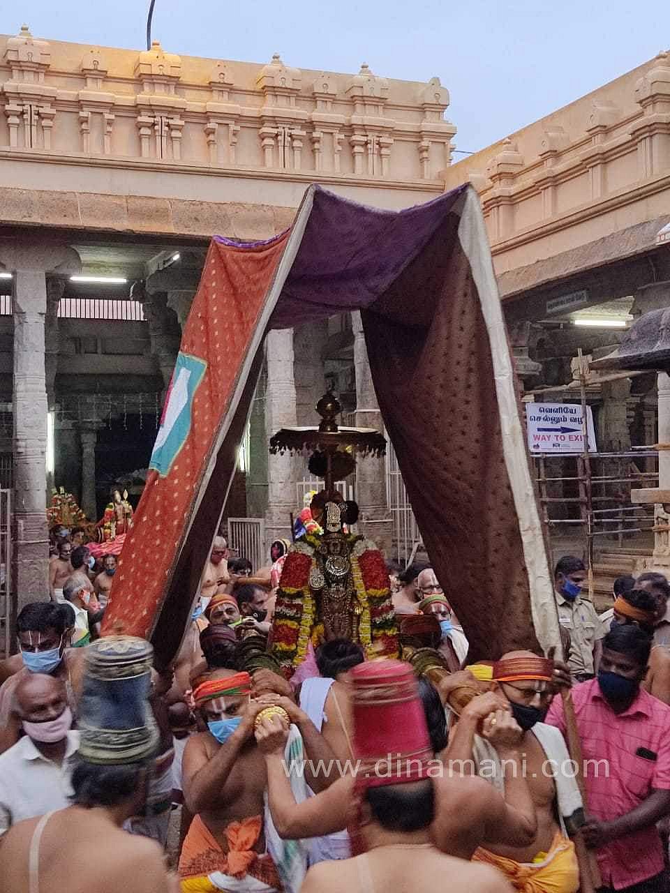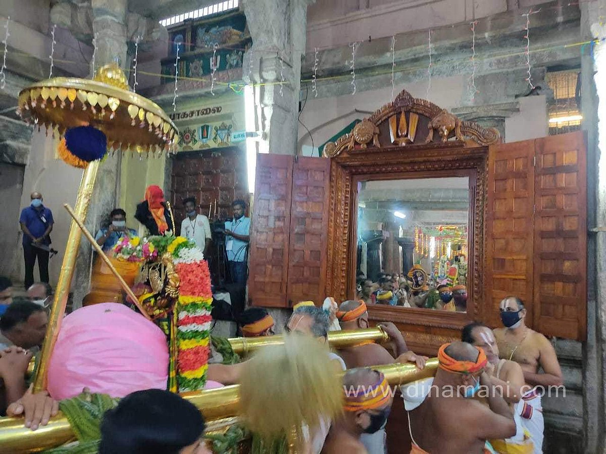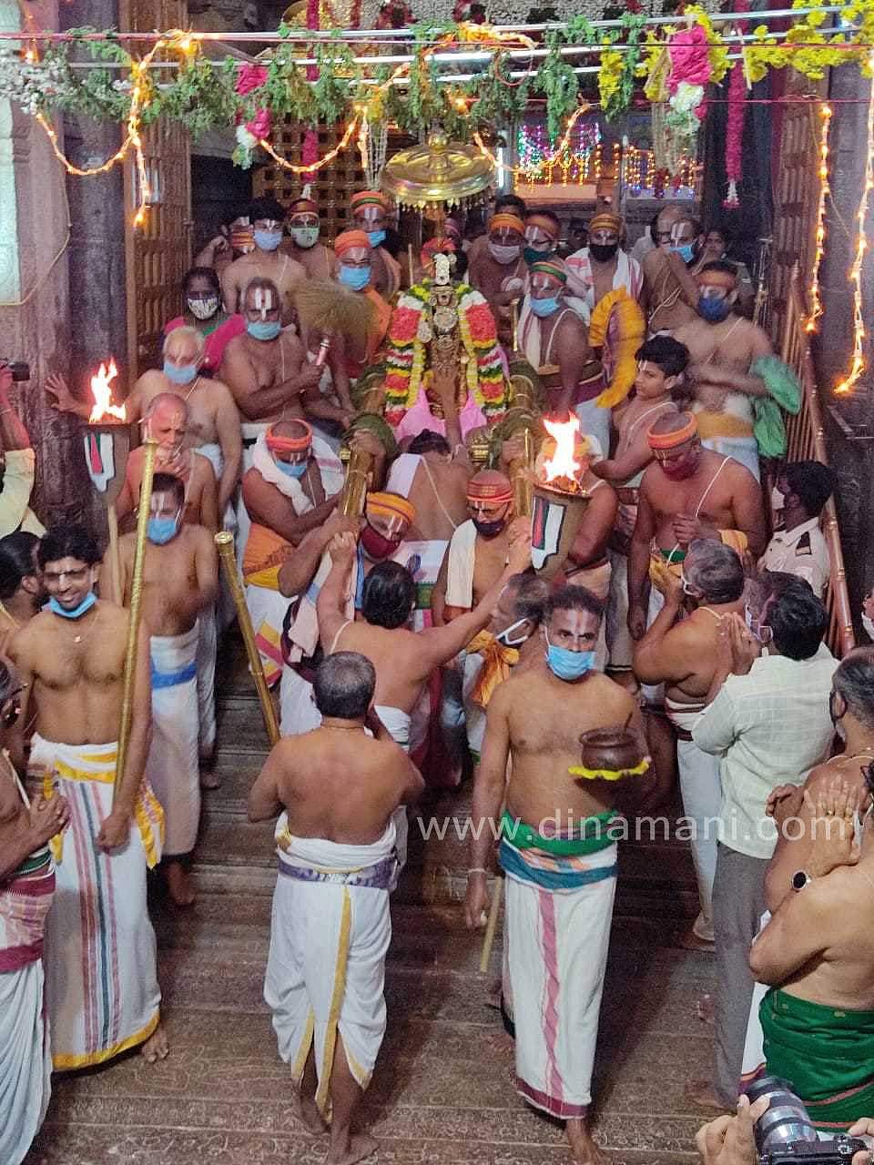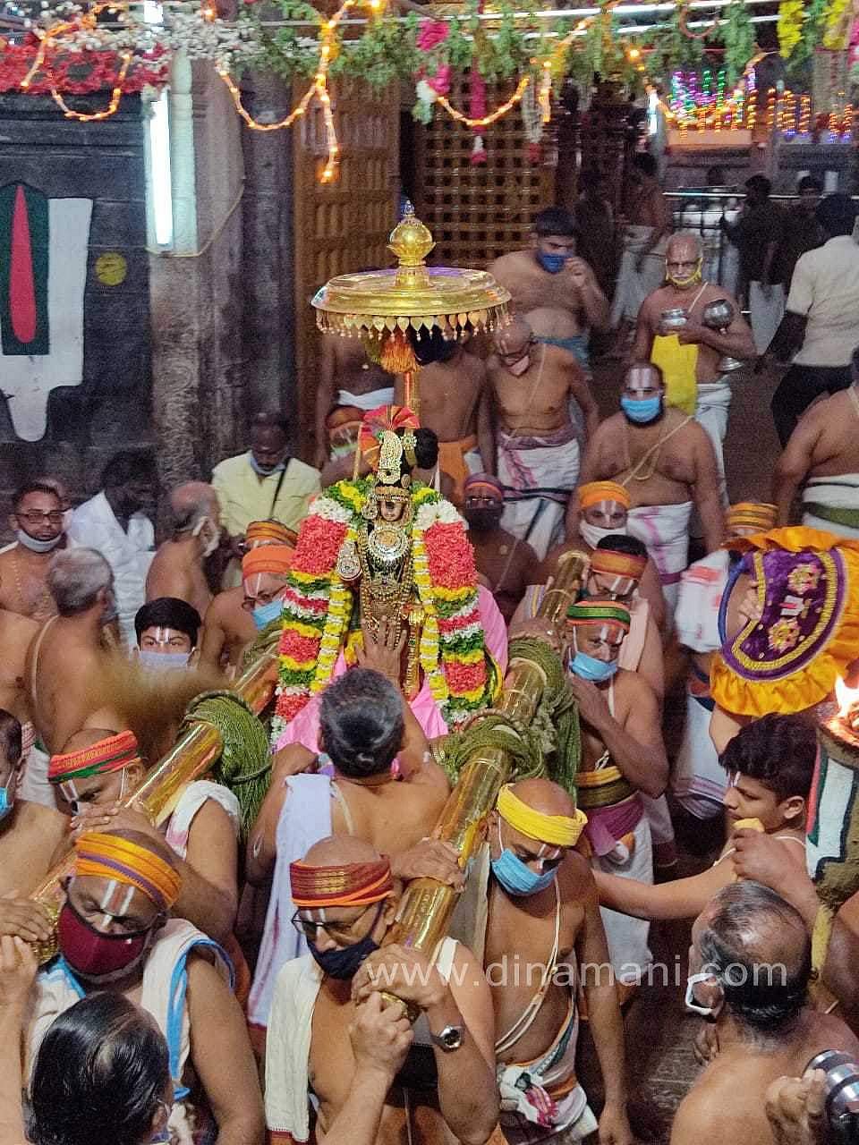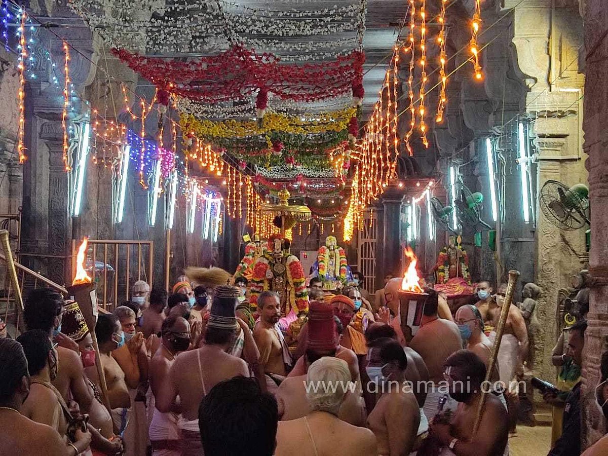 காலை 8 மணி முதல் பக்தா்கள் வரிசையில் நின்று தரிசித்து வருகின்றன. இரவு 8 மணிக்கு மேல் பக்தா்களுக்கு அனுமதியில்லை. பக்தா்கள் முகக் கவசம் அணிந்து, சமூக இடைவெளியுடன் தரிசனம் செய்து வருகின்றனர்.
