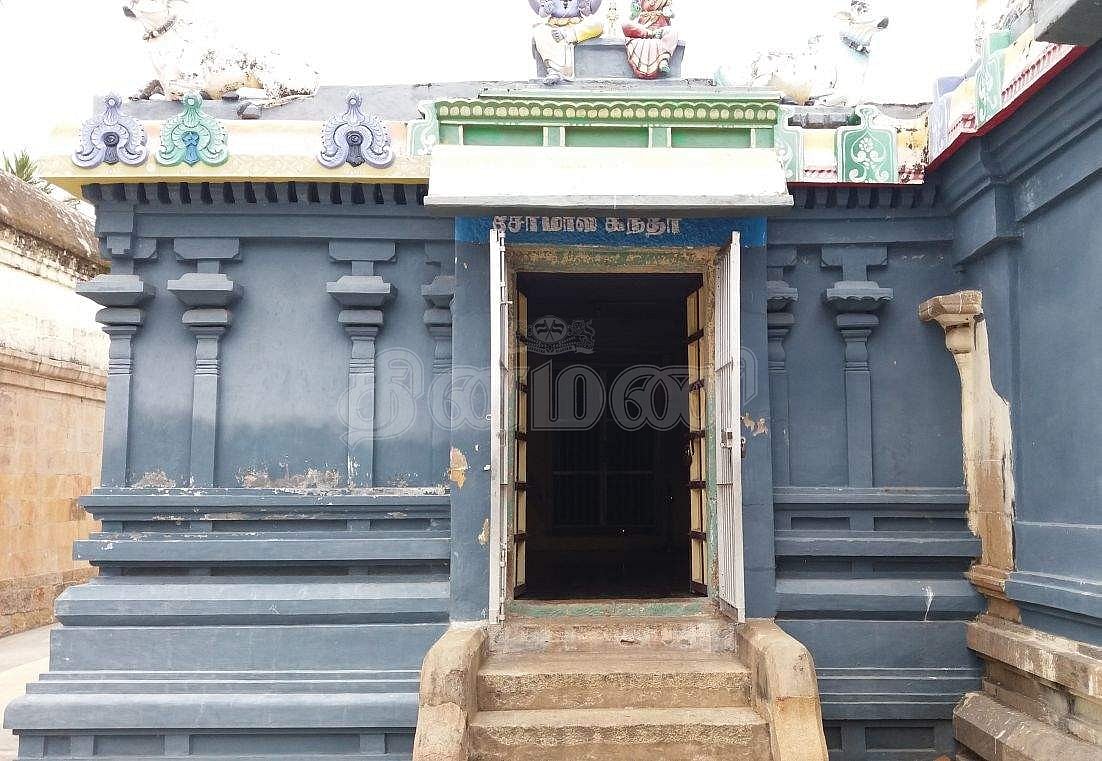 சுவாமி கோயிலுக்கு முன்னால் கொடி மரம், பலி பீடம், நந்தி ஆகியவையும் தென் கிழக்கில் மடப்பள்ளி 63 நாயன்மார்களும், வடகிழக்கில் நடராஜர் சபா முன் மண்டபமும், யாகசாலையும் இருக்கின்றன. இதற்கு அடுத்து மேல் பக்கம் சுவாமிக்கு வடகிழக்கில் நடராஜர் சன்னதியும், நவக்கிரகங்களும், தென் பக்கம் சோமாஸ்கந்தர் சன்னதியும், அருகில் தென் கிழக்கில் தல விநாயகர் கற்பகப் பிள்ளையார் சன்னதியும் உள்ளன.