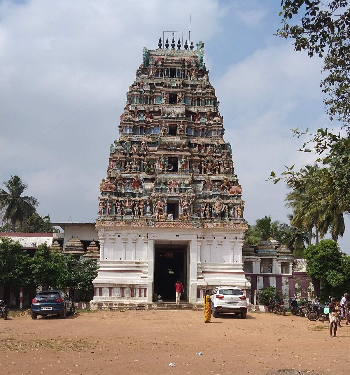 கிழக்கு மேற்காக 270 அடியும், தெற்கு வடக்காக 150 அடியும் சுற்றளவாக அமைந்துள்ள இத்திருக்கோவிலின் ராஜ கோபுரம் ஐந்து நிலைகளை உடையதாய் காணப் பெறுகின்றது. அதனை அடுத்து உட்புறம், விநாயகர் சன்னதியும், கொடிமரமும், அதிகார நந்தி சன்னதியும் அமைந்துள்ளன.