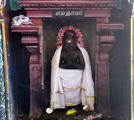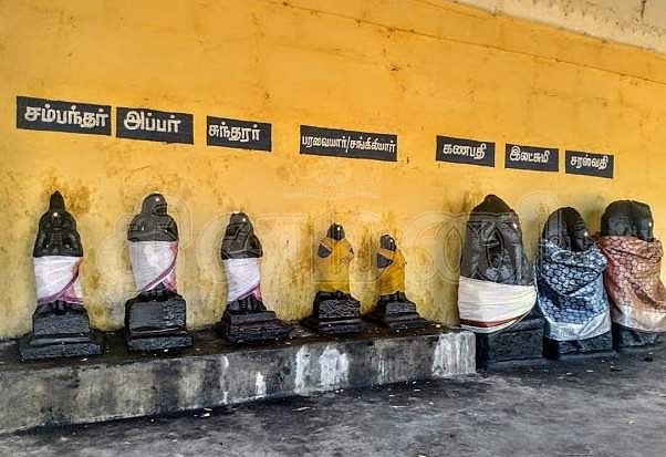உள் மண்டபத்தில் வலப்புறம் சித்திரகுப்தரும், இடப்புறம் எமதர்மனும் உள்ளனர். மூலவர் சன்னதிக்கு முன்பாக நந்தியும், பலி பீடமும் இருக்கின்றன. இரு புறமும் துவாரபாலகர்கள் உள்ளனர். வெளித்திருச்சுற்றில் சம்பந்தர், அப்பர், சுந்தரர், பரவை நாச்சியார், சங்கிலியார், கணபதி, நாகர், விசுவநாதர் விசாலாட்சி, ஏகாம்பரேசுவரர் காமாட்சி, வள்ளி தெய்வானையுடன் கூடிய சண்முகேசர் சன்னதிகள், கரையேற்று விநாயகர் சன்னதிகள் ஆகியவை உள்ளன.