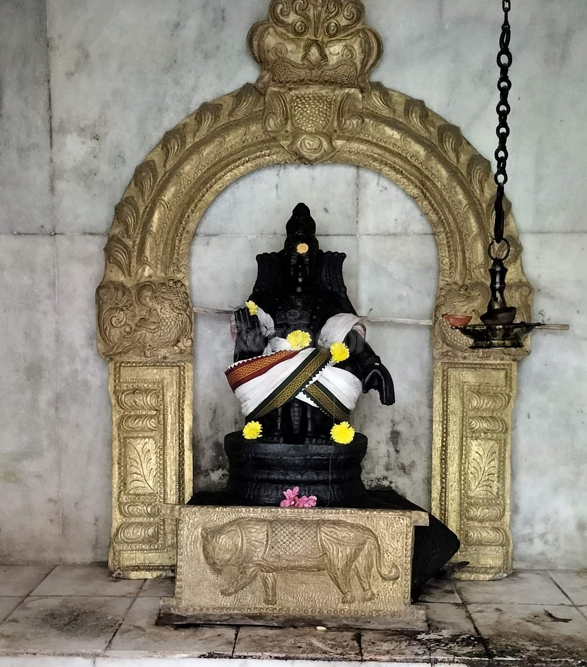 இறைவன் சுயம்பு லிங்கமாகும். மூலவர் லிங்கத் திருமேனி சற்றே அளவில் பெரியதாகும். இறைவன் சன்னதிக்கு வெளியே துவாரபாலகர்கள் இருக்கின்றனர். வெளி பிரகாரத்தில் தட்சிணாமூர்த்தி, கஜலஷ்மி, சரஸ்வதி, பஞ்சமுக ஆஞ்சனேயர், சண்டிகேஸ்வரர் சன்னதிகள் இருக்கின்றன. சனீஸ்வரனும், பைரவரும் முக மண்டபத்தில் காட்சியளிக்கின்றனர்.