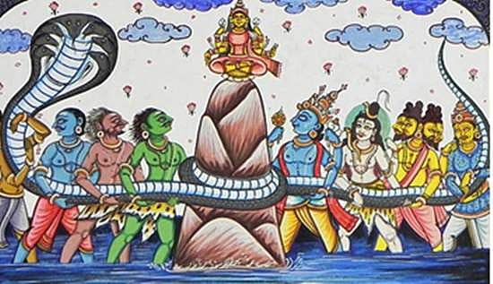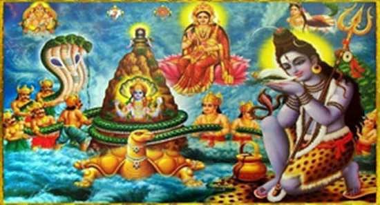 துர்வாச முனிவரின் சாபத்தால் அனைத்து செல்வத்தையும், பதவியையும் தேவேந்திரன் இழந்தான். இதை அறிந்த அசுரர்கள் தேவர்களுடன் போரிட்டனர். தேவர்கள் அசுரர்களை கொல்ல அசுரர்களின் குருவான சுக்கிராச்சாரியார் சிவபெருமானிடம் பெற்ற சஞ்சீவினி மந்திரத்தால் இறந்த அசுரர்களை உயிர் பெறச் செய்தார். இதனால் மிகவும் சோர்ந்த தேவர்கள் விஷ்ணுவைக் கண்டு இதற்கு ஒரு தீர்வு அளிக்குமாறு வேண்டினார்கள். திருமால் மந்திரமலையைக் கொண்டு பாற்கடலை கடைய அதில் இருந்து கிடைக்கும் அமிர்தத்தை உண்டால் மட்டுமே நீங்கள் போரில் வெற்றி பெற இயலும் என்று கூறினார்.