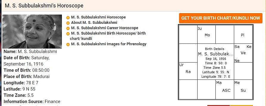 எம்.எஸ் சுப்புலக்ஷ்மி அவர்களின் ஜாதகத்தில்