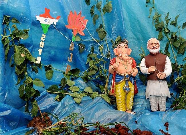 மைசூரில் கணபதியுடன் பிரதமர் மோடி இருப்பதாகவும், பாஜக சின்னம் இருப்பதைப் போன்றும் சிலை வடிவமைக்கப்பட்டது.