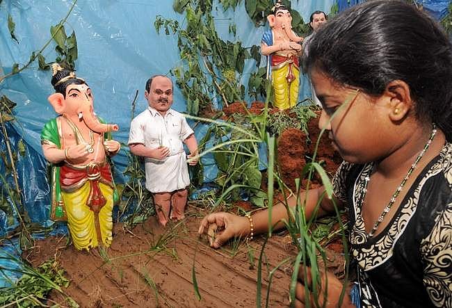 மைசூரில் கணபதியுடன் முதல்வர் குமாரசாமி விதை விதைப்பதைப் பார்வையிடுவதாகவும் அமைக்கப்பட்டது.