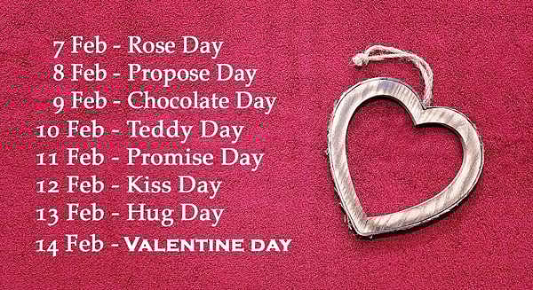 பொதுவாக நாம் பிப்ரவரி 14-ஐ மட்டும் தான் காதலர் தினமாக்க கொண்டாடிக்கொண்டு இருக்கிறோம். ஒரே நாளில் எந்த பிரச்சனையையும் சந்திக்காமல் காதலை கூறி அதே நாளுக்குள் அவரும் முடிவு செய்து காதலித்து விட முடியுமா என்ன? அதனால் தான் காதலர் வாரம் என்று ஒன்று கொண்டாடப்படுகிறது. ஆண்டுதோறும் பிப்ரவரி 7-ம் தேதி இந்த காதலர் வாரம் தொடங்கும். தொடர்ந்து 7 நாட்கள் முடிந்ததும் 14-ம் தேதி காதலர் தினமாக இருவரும் கைகோர்க்கும் தினமாகக் கொண்டாடப்படுகிறது. காதலர் வாரம் பிப்ரவரி 7-ம் நாள் தொடங்கும். அன்றிலிருந்து 7 நாட்களும் ஏழு விதமான காதல் கொண்டாட்டங்கள் இருக்கும்.