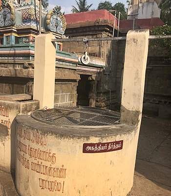 காவிரிக்கு தென்கரையில் உள்ள தேவாரப் பாடல் பெற்ற தலங்களில் எட்டாவது திருத்தலம் இது. ஒருமுறை அகத்தியரே இங்கு வந்து வழிபட்டதாகவும் நம்பிக்கை உள்ளது. வடக்குப் பிராகாரத்தில் உள்ள அகத்தியர் சந்நிதிக்கு எதிரே ஒரு கிணறு உள்ளது. இதை அகத்திய தீர்த்தம் என்கிறார்கள். சிவனுக்குப் பூஜை செய்வதற்காக அகத்தியர் தனது கட்டை விரலை பூமியில் அழுத்தியதால் வந்ததாம் இந்தக் கிணறு. இதில், கையால் எட்டித் தொட்டுவிடும் தூரத்தில் எப்போதும் தண்ணீர் நிறைந்திருக்கும்.