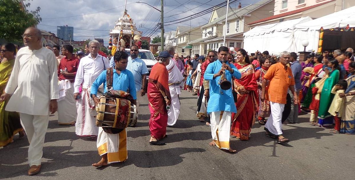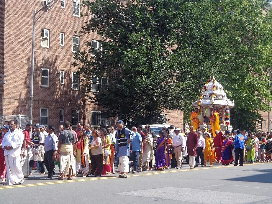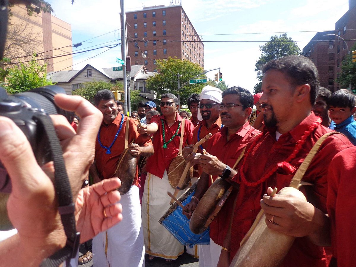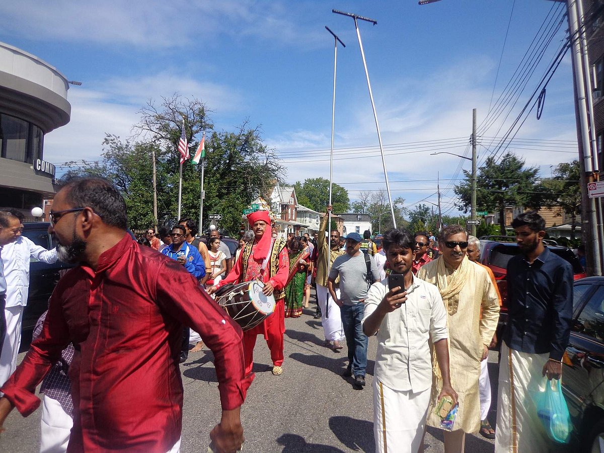 பறை இசைக்குழுவினர், "டோல் டிரம்ஸ்" இசைக் குழுவினரரின் இசை முழக்கங்களுடன், கும்மி கோலாட்டம் ஆட்டம் பாட்டங்களுடன் பல்லாயிரக்கணக்கில் பக்தர்கள் உடன் செல்ல, நியூயார்க் குயின்ஸ் பகுதியின் பிரதான சாலைகளில் மூன்று மணி நேர ரத யாத்திரை மிகக் கோலாகலமாக நடைபெற்றது.