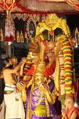 கருட வாகன சேவையில் அருள்பாலித்த ஸ்ரீமலையப்ப சுவாமி.