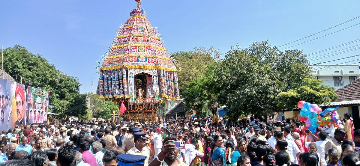 திரளானோரின் பங்கேற்பில் வேதாரண்யம் கோயில் தேரோட்டம் விமரிசையாக நடைபெற்றது.