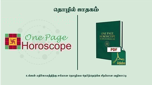 உங்கள் தொழில் வாழ்க்கைக்கான முழுமையான ஆலோசனை மற்றும் உங்களுக்கு ஏற்ற தொழிலை அடையாளம் காண நாங்கள் உதவுகிறோம். தொழில் முன்னேற்றம் மற்றும் வளர்ச்சிக்கான சிறந்த காலங்களை எங்கள் தொழில் ஜாதகம் பகுப்பாய்வு வெளிப்படுத்துகிறது. ரூ. 700-க்கு இந்த விரிவான தொழில் அறிக்கையை பிடிஎஃப் ஆக உங்கள் மின்னஞ்சல் மற்றும் வாட்ஸ்ஆப்பில் பெற்றுக்கொள்ளும் வசதியும் உள்ளது.