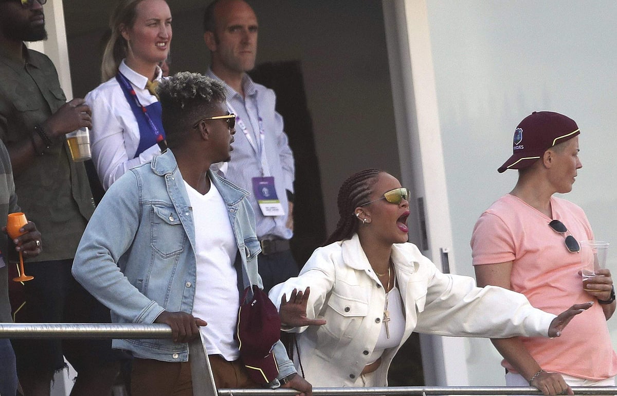 பார்படாஸைச் சேர்ந்த ரிஹான்னா, தற்போது லண்டனில் வசித்து வருகிறார். இதனால் நேற்றைய ஆட்டத்தைக் காண வந்த ரிஹான்னா, மே.இ. அணிக்குத் தன்னுடைய முழு ஆதரவைத் தெரிவித்தார். மே.இ. அணியின் கொடியைத் தாங்கிப் பிடித்து வீரர்களை உற்சாகமூட்டினார். ஆட்டம் முடிந்தபிறகு வீரர்களின் ஓய்வறைக்கு வந்து வீரர்களிடம் சிறிது நேரம் உரையாடினார்.