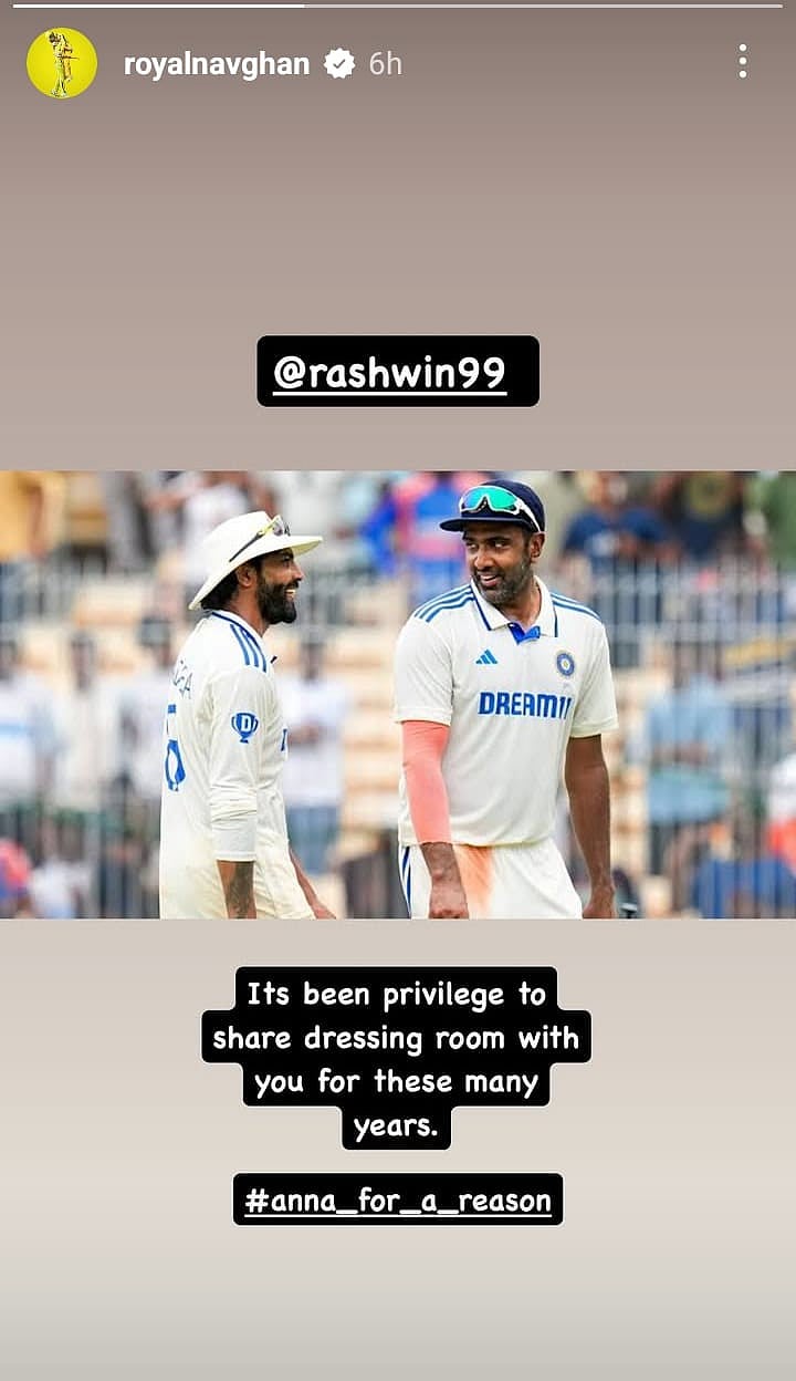 தனது இன்ஸ்டா பக்கத்தில் ரவிந்திர ஜடேஜா ஸ்டோரில் கூறியதாவது: