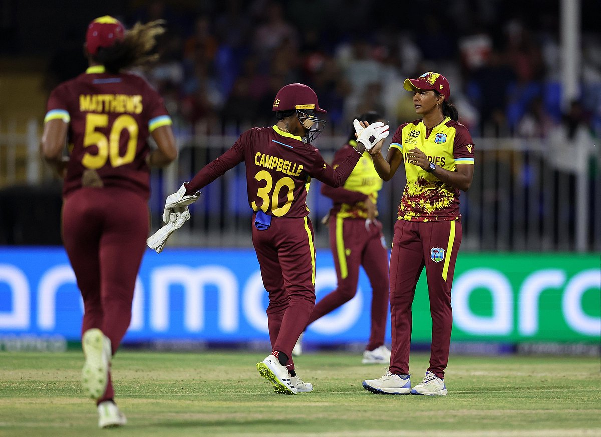 மேற்கிந்தியத் தீவுகள் தரப்பில் டீன்ரா டோட்டின் 4 விக்கெட்டுகளைக் கைப்பற்றி அசத்தினார். அஃபி ஃப்ளெட்சர் 2 விக்கெட்டுகளையும், கரிஸ்மா மற்றும் ஆலியா தலா ஒரு விக்கெட்டினையும் கைப்பற்றினர்.