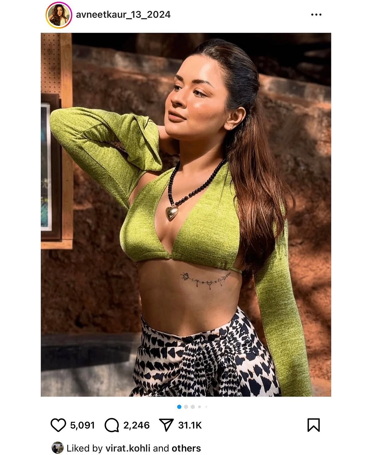 இன்ஸ்டாகிராம் பக்கத்தில் விராட் கோலி அவ்னீத் கௌரின் ஃபேன் பேஜில் (ரசிகர்களின் பக்கத்தில்) நடிகையின் புகைப்படத்துக்கு லைக் செய்திருந்தார். இது நடிகையின் அசலான வலைதள பக்கம் கிடையாது.