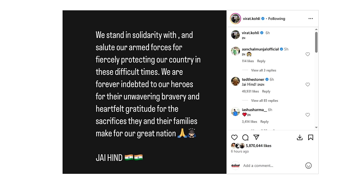 அந்தப் பதிவில், “இந்த இக்கட்டான நேரத்தில் நாட்டை பாதுகாத்து அரணாக நிற்கும் ராணுவ வீரர்களுக்கு துணை நிற்போம். இந்த ஹீரோக்களுக்கு நாம் என்றென்றும் கடமைப்பட்டுள்ளோம். ராணுவ வீரர்கள் மற்றும் அவர்களின் குடும்பத்தினரின் தியாகங்களுக்கு நன்றி. ஜெய் ஹிந்த்!” எனப் பதிவிட்டுள்ளார்.
