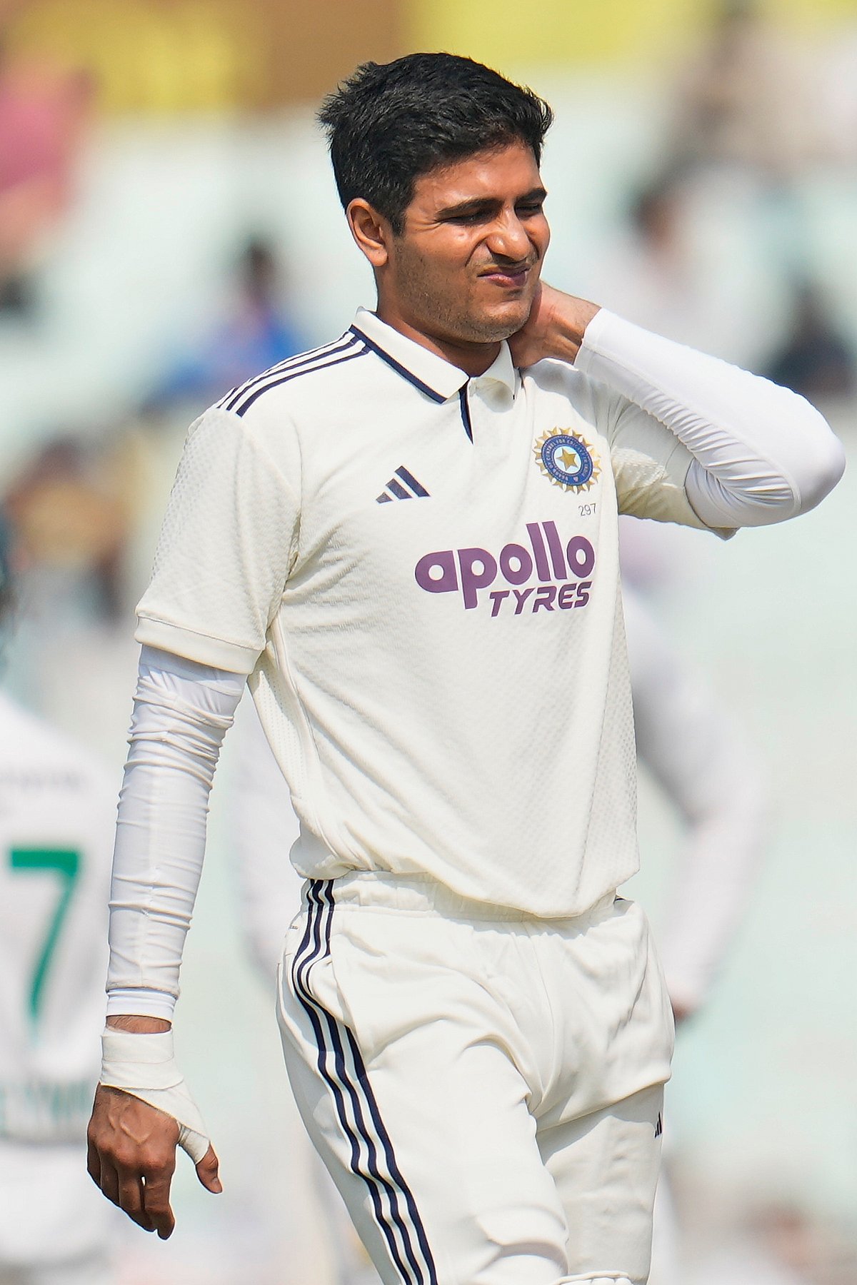 கொல்கத்தாவில் நடைபெற்ற முதல் டெஸ்ட்டின் முதல் இன்னிங்ஸில், ஹார்மர் பந்து வீச்சின்போது இந்திய கேப்டன் ஷுப்மன் கில் ஒரு பவுண்டரியுடன் 4 ரன்களில் வெளியேறினார். அவர் கழுத்தில் ஏற்பட்ட அசௌகரியம் காரணமாக இரண்டாவது இன்னிங்ஸிலும் விளையாடவில்லை.