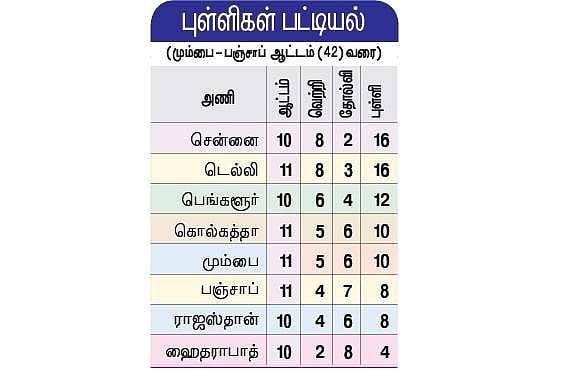 அபுதாபியில் செவ்வாய்க்கிழமை இரவு நடைபெற்ற ஆட்டத்தில் முதலில் பேட் செய்த பஞ்சாப் 20 ஓவர்களில் 6 விக்கெட் இழப்புக்கு 135 ரன்கள் அடித்தது. அடுத்து ஆடிய மும்பை 19 ஓவர்களில் 4 விக்கெட் இழப்புக்கு 137 ரன்கள் அடித்து வென்றது.