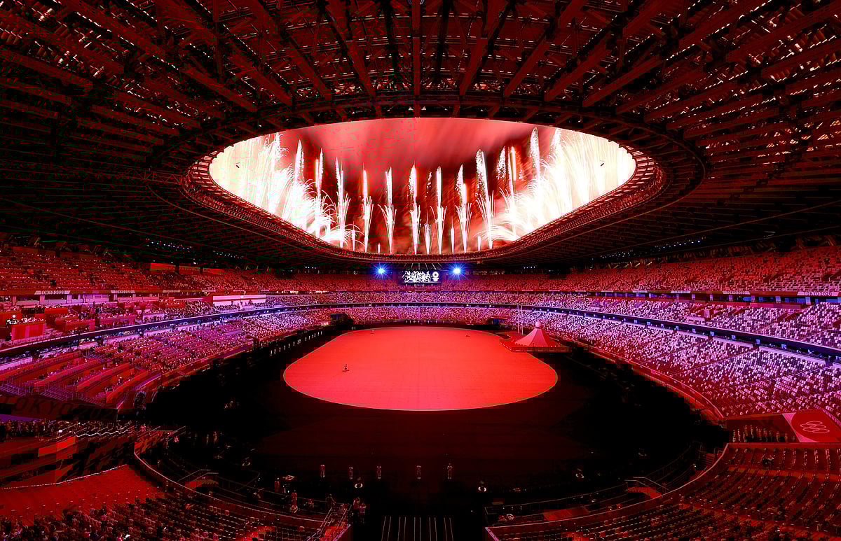 டோக்கியோவில் ஒலிம்பிக் போட்டிகளுக்கான நான்கரை மணிநேர தொடக்கவிழா பார்வையாளர்களின்றி நடைபெற்று வருகின்றது.