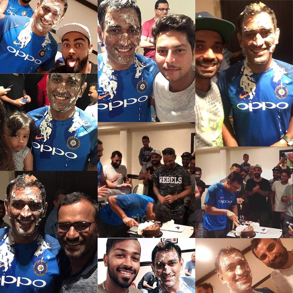 மேற்கிந்தியத் தீவுகளுக்குச் சுற்றுப்பயணம் செய்துள்ள இந்திய அணி, தோனியின் பிறந்தநாளை மிகவும் விமரிசையாகக் கொண்டாடியது. தோனி கேக் வெட்டியபோது மற்றவர்கள் செய்வதற்கு முன்பு தானே அருகில் இருந்த இன்னொரு கேக்கில் முகம் புதைத்து அனைவரையும் மகிழ்ச்சிக்கு ஆளாக்கினார். தோனியின் மனைவி, குழந்தையும் இந்தக் கொண்டாட்டத்தில் கலந்துகொண்டார்கள்.