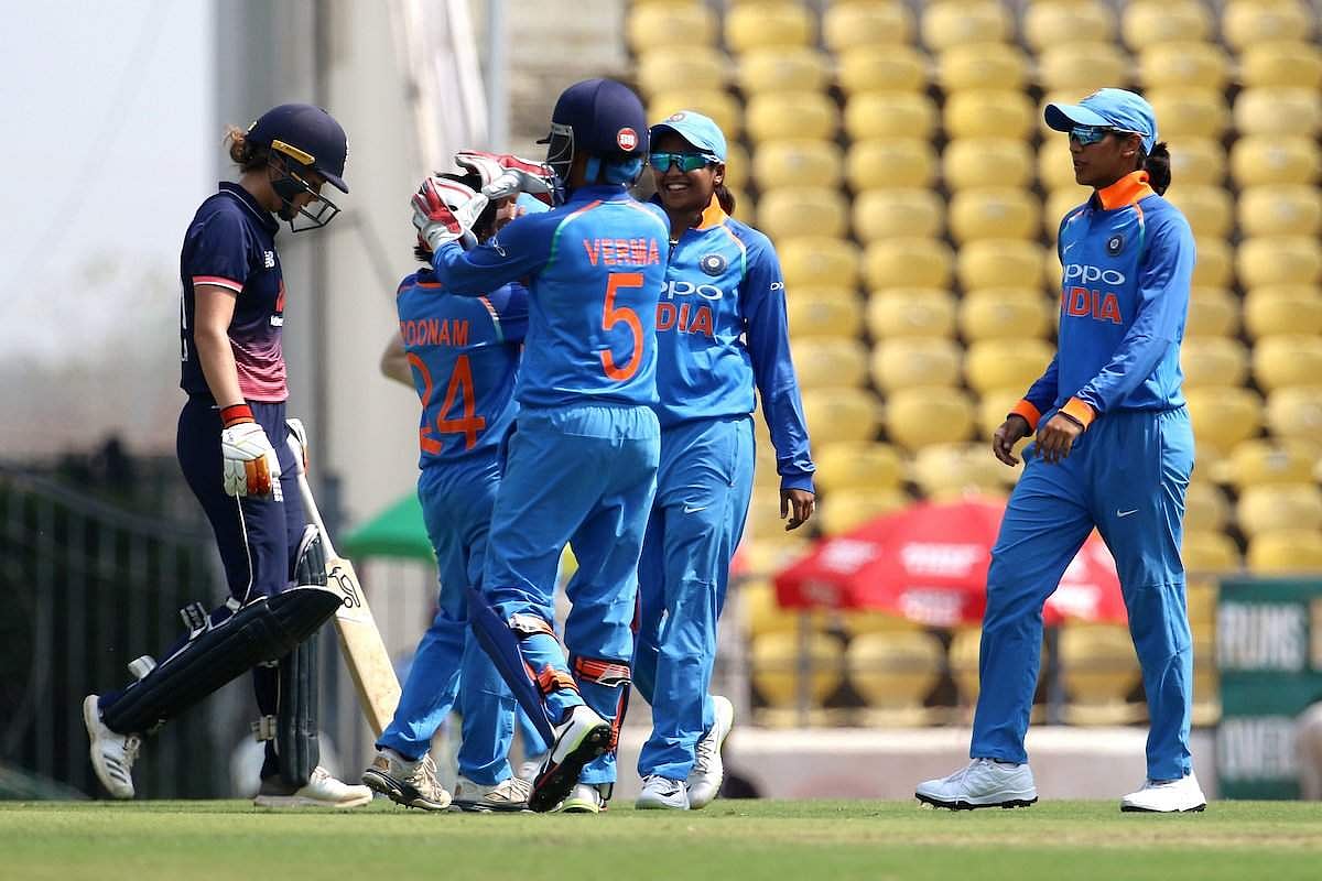 இங்கிலாந்து மகளிர் அணி 49.3 ஓவர்களில் 207 ரன்களுக்கு அனைத்து விக்கெட்டுகளையும் இழந்தது. இந்திய மகளிர் அணித் தரப்பில் பூணம் யாதவ் சிறப்பாகப் பந்துவீசி 4 விக்கெட்டுகளை வீழ்த்தினார். ஏக்தா, தீப்தி சர்மா ஆகியோர் தலா 2 விக்கெட்டுளை வீழ்த்தியுள்ளார்கள்.