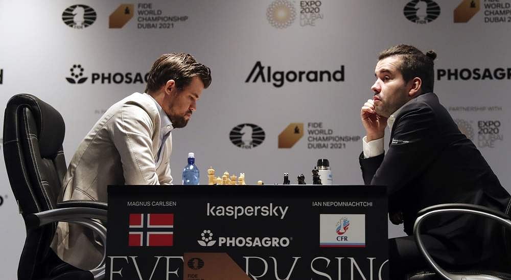நடப்பு உலக சாம்பியன் கார்ல்சன் - ரஷியாவைச் சேர்ந்த இயன் நிபோம்நிஷி ஆகியோருக்கிடையிலான உலக செஸ் சாம்பியன்ஷிப் போட்டி துபையில் நடைபெற்று வருகிறது. இந்தப் போட்டியில் வெல்லும் வீரர் உலக சாம்பியனாக பட்டம் சூட்டப்படுவார். கேண்டிடேட்ஸ் போட்டியை வென்றதன் மூலம் இப்போட்டியில் விளையாட இயன் நிபோம்நிஷி தகுதி பெற்றார்.