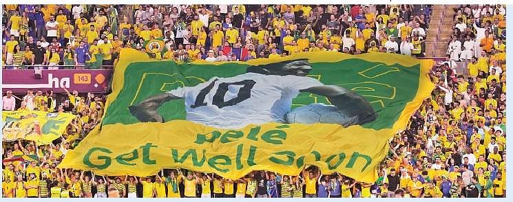 பிரேஸில் கால்பந்து நட்சத்திரமான பீலே மூச்சுத் திணறல் காரணமாக மருத்துவமனையில் அனுமதிக்கப்பட்டு சிகிச்சை பெற்று வருகிறாா். அவருக்கு ஆதரவு தெரிவிக்கும் விதமாக, தென் கொரியாவுக்கு எதிரான ஆட்டத்துக்குப் பிறகு ஆடுகளத்தின் மையத்தில் பீலே படமும், பெயரும் பொறித்த பதாகையை நெய்மா் ஏந்தி நிற்க, உடன் பிரேஸில் வீரா்களும் இருந்தனா். அதேபோல் மைதானத்திலும் பீலேவுக்கு ஆதரவான பேனா்களை ரசிகா்கள் வைத்திருந்தனா்.
