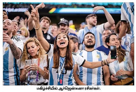 பிஃபா உலகக் கோப்பை கால்பந்து போட்டியின் அரையிறுதி ஆட்டத்தில் குரோஷியாவை 3-0 என்ற கோல் கணக்கில் வீழ்த்தி 6-ஆவது முறையாக இறுதிச் சுற்றுக்கு தகுதி பெற்றுள்ளது ஆா்ஜென்டீனா.
