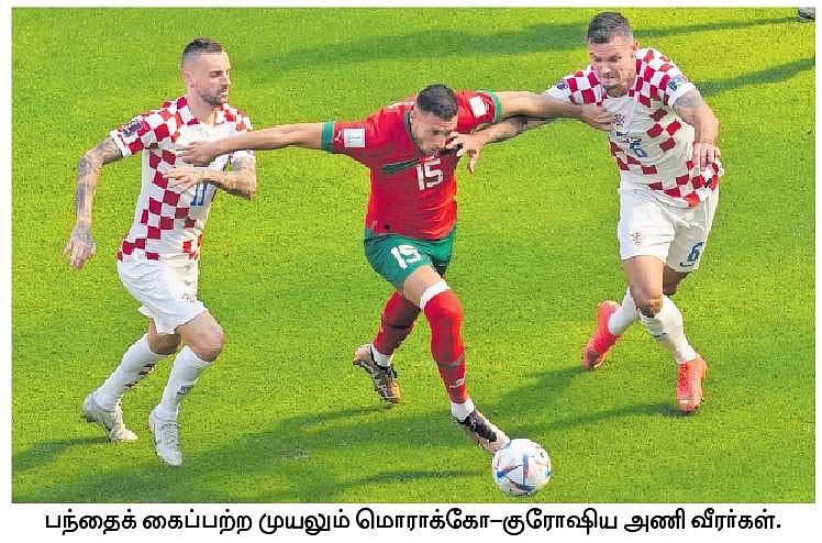 இறுதியில் ஆட்டநேர முடிவில் 0-0 என கோலின்றி டிராவில் முடிந்தது குரோஷிய-மொராக்கோ ஆட்டம்.