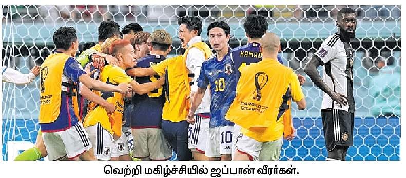 தோஹா, நவ. 23: கடைசி நேரத்தில் 2 கோல்களை அடித்து 4 முறை உலக சாம்பியன் ஜெர்மனியை வீழ்த்தி அதிர்ச்சி வைத்தியம் அளித்தது ஜப்பான்.