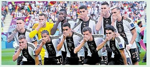 ஓரினச் சேர்க்கையாளர்கள் (எல்ஜிபிடிகியு) பிரிவினர் கத்தாரில் சட்டவிரோதம் என அறிவிக்கப்பட்டதற்கு எதிர்ப்பு தெரிவித்து ஒன் லவ் ஆர்ம்பேண்ட் என தோள்பட்டையை அணிய வேண்டும் என 7 ஐரோப்பிய கால்பந்து சங்கங்கள் அறிவித்திருந்தன. ஆனால், அவ்வாறு அணிந்தால் கடும் நடவடிக்கை எடுக்கப்படும் என பிஃபா எச்சரித்ததால், தோள்பட்டையை அணியவில்லை. ஜப்பானுக்கு எதிரான ஆட்டத்தில் ஜெர்மன் வீரர்கள் தொடக்கத்தில் தங்கள் கையால் வாயை மூடிக்கொண்டு எதிர்ப்பைப் பதிவு செய்தனர்.
