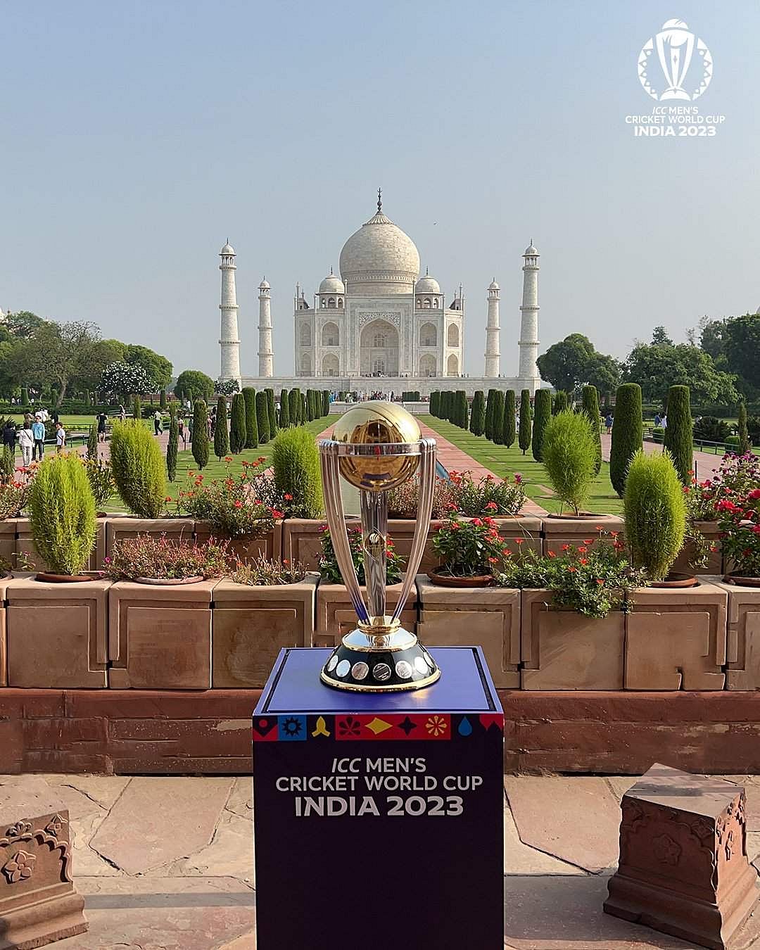 இந்தியாவில் நடைபெறவுள்ள ஒருநாள் உலகக் கோப்பை போட்டிக்கான கோப்பையை தாஜ் மஹாலில் மக்களின் பார்வைக்கு காட்சிப்படுத்தப்பட்டுள்ளது.