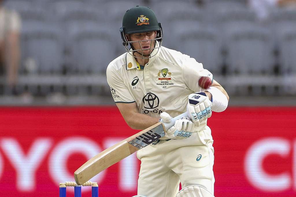 அடுத்து வந்த ஸ்டீவ் ஸ்மித் கவாஜாவுடன் நிலைத்து நின்று ஆடினார். ஷாஹீன் ஷா அஃப்ரிடி பந்தில் அடி உதை வாங்கினாலும் மனம் தளராமல் பந்தினை சிக்ஸருக்கு விளாசினார் ஸ்மித்.