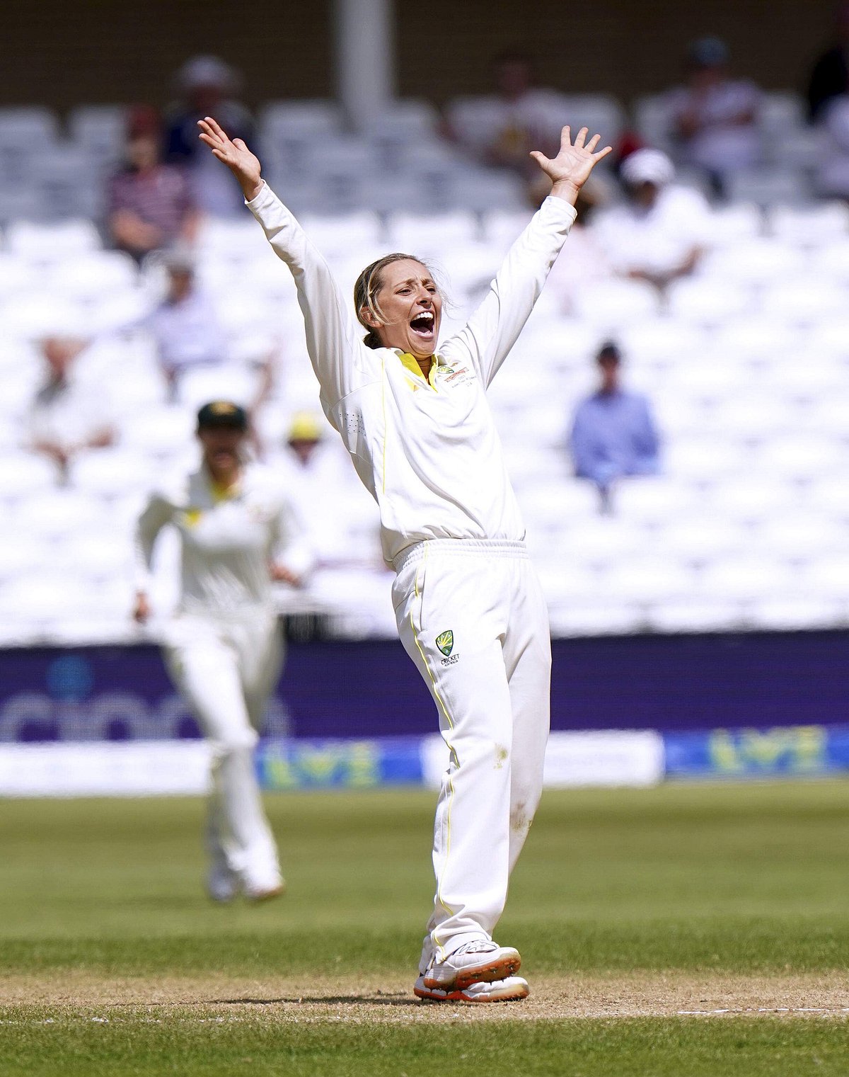 இங்கிலாந்து அணியில் டேனியலி யாட் மட்டுமே 54 ரன்கள் எடுத்தார், மற்றவர்கள் சொற்ப ரன்களில் ஆட்டமிழந்தனர்.