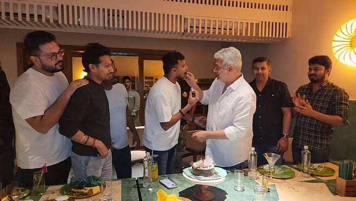 இந்நிலையில், இந்திய கிரிக்கெட் அணிக்காக விளையாடிய தமிழகத்தைச் சேர்ந்த வேகப் பந்துவீச்சாளர் நடராஜனின் பிறந்தநாள் கொண்டாட்டத்தில் அஜித் கலந்துகொண்டு கேக் ஊட்டி தன் வாழ்த்துகளைப் பகிர்ந்துகொண்டார்.