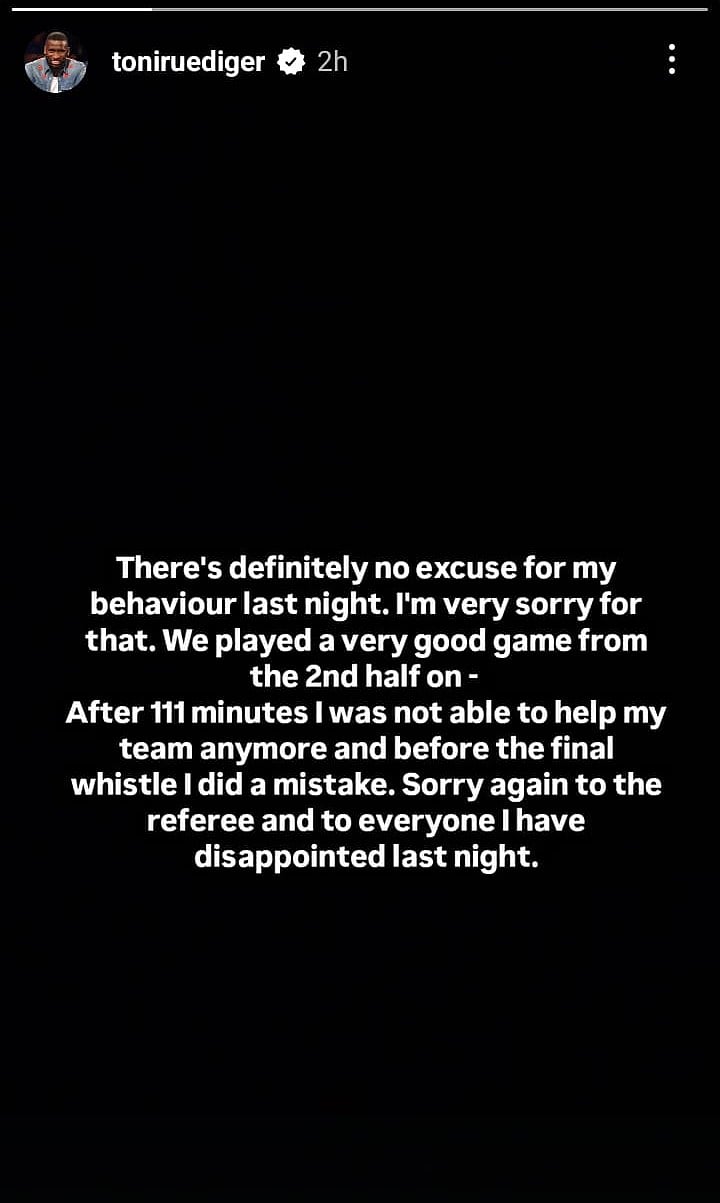 ஸ்பானிஷ் கோப்பை இறுதிப் போட்டியில் ரியல் மாட்ரிட் வீரர் அன்டோனியோ ரூடிகர் தான்செய்த செயலுக்கு மன்னிப்பு கேட்டுள்ளார்.