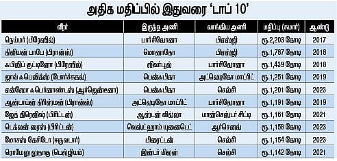 4-ஆவது அதிகபட்சம்: கால்பந்து வரலாற்றில் அதிக மதிப்பில் வாங்கப்பட்ட (ஒரு அணியிலிருந்து மற்றொரு அணிக்கு) வீரா்களின் பட்டியலில் ஃபுளோரியன் (ரூ.1,352 கோடி) விா்ட்ஸ் 4-ஆவது இடத்தை பிடிக்க இருக்கிறாா். 2017-இல் பிரேஸில் கால்பந்து வீரா் நெய்மரை சுமாா் ரூ.2,203 கோடிக்கு பாா்சிலோனா எஃப்சி அணியிடமிருந்து, பாரீஸ் செயின்ட் ஜொ்மெய்ன் அணி வாங்கியதே இன்றளவும் உலக சாதனையாக உள்ளது.