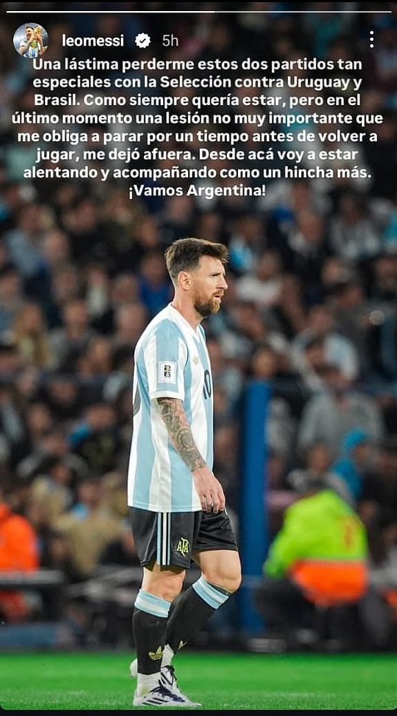 இது குறித்து மெஸ்ஸி தனது இன்ஸ்டா ஸ்டோரியில் கூறியதாவது: