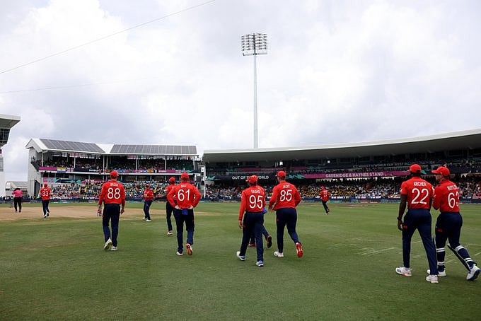 டி20 உலகக் கோப்பைத் தொடரில் பார்படாஸில் நடைபெற்ற நேற்றைய ஆட்டத்தில் இங்கிலாந்து மற்றும் ஸ்காட்லாந்து அணிகள் மோதின. மழையின் காரணமாக போட்டி தொடங்குவதில் சற்று தாமதம் ஏற்பட்டது. இந்தப் போட்டியில் டாஸ் வென்ற ஸ்காட்லாந்து பேட்டிங்கைத் தேர்வு செய்தது.