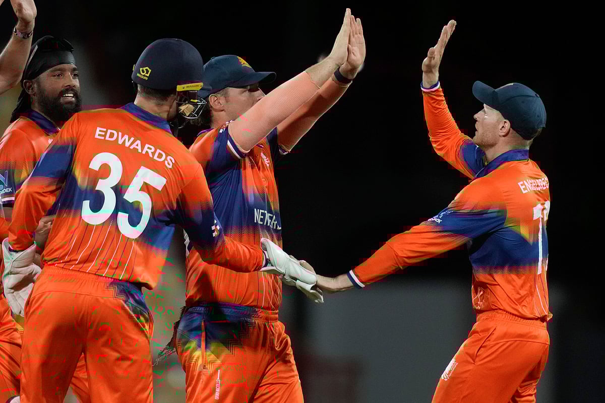 பின்னர் 202 ரன்கள் எடுத்தால் வெற்றி என்ற கடின இலக்குடன் களமிறங்கிய நெதர்லாந்து அணியால் 10 விக்கெட் இழப்பிற்கு 118 ரன்களே எடுக்க முடிந்தது. அந்த அணியில் அதிகபட்சமாக மைக்கேல் லெவிட், கேப்டன் ஸ்காட் எட்வர்ட் தலா 31 ரன்கள் எடுத்தனர். மற்ற வீரர்கள் சொற்ப ரன்னில் ஆட்டமிழந்தனர். இலங்கை தரப்பில் நுவான் துஷாரா 2 விக்கெட்டுகளை வீழ்த்தினார்.