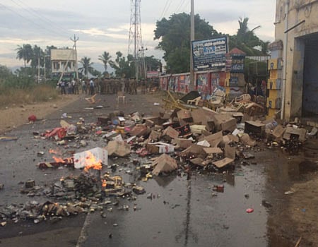 திருநெல்வேலி மாவட்டம், சங்கரன்கோவில் அருகே கலிங்கப்பட்டியில் ஞாயிற்றுக்கிழமை டாஸ்மாக் மதுக்கடை முன் நடைபெற்ற முற்றுகைப் போராட்டத்தில் வன்முறை ஏற்பட்டதால், போலீஸார் கண்ணீர்ப் புகைக்குண்டு