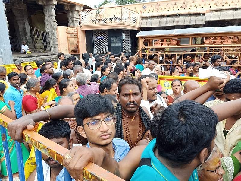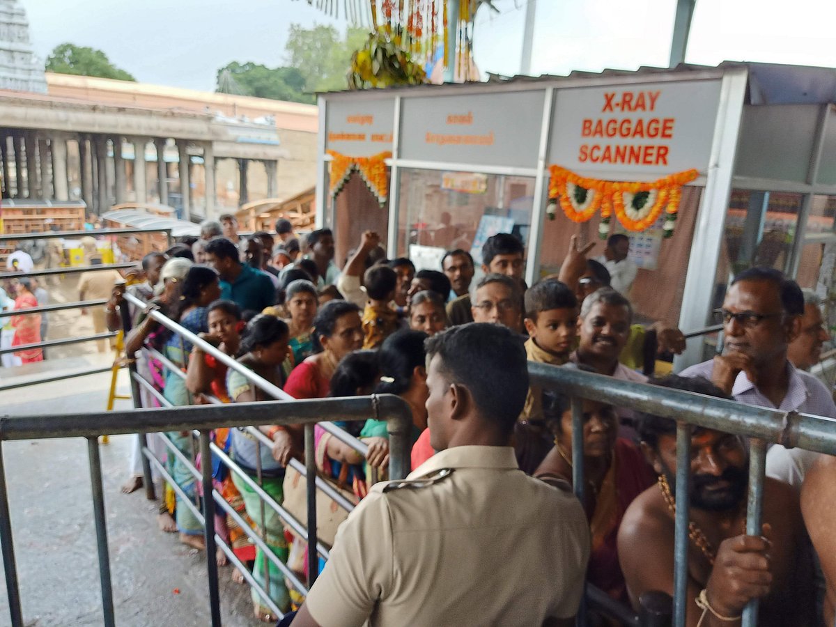 திருவண்ணாமலை அருள்மிகு அருணாச்சலேசுவரர் திருக்கோவிலில் இன்று காலையில் சில மணி நேரங்களுக்குக் காவல்துறையினர் யாரும் இல்லாததால் கோவிலில் தள்ளுமுள்ளும் பெரும் குழப்பமும் நேரிட்டது.