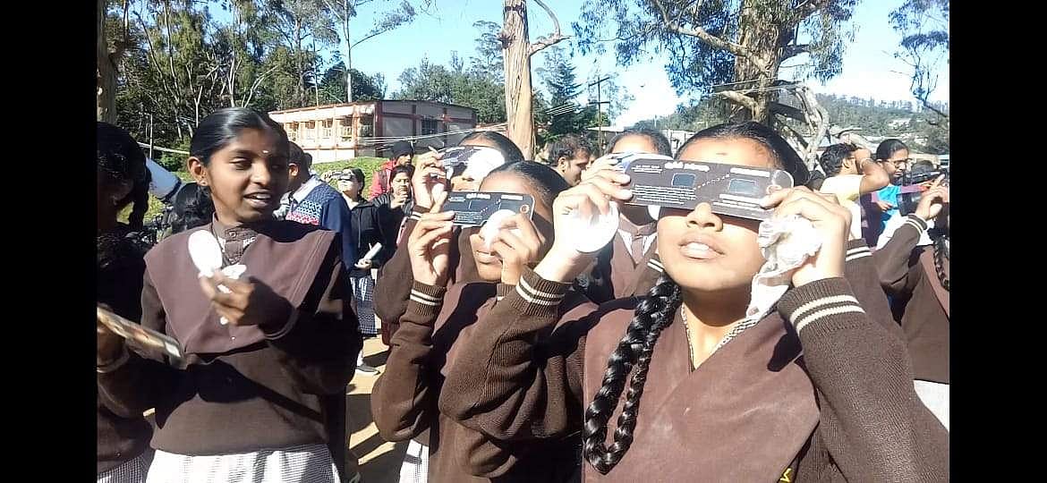இன்று காலை 08.08 மணிக்கு துவங்கிய சூரிய கிரகணம் சுமார் 9.35 மணிக்கு நேராக வரும் சந்திரன் சூரியனை மறைத்தது. சுமார் 5 நிமிடங்கள் நீடித்த இந்த சூரிய கிரகணத்தை பார்க்கும் வகையில் உதகையில் சிறப்பு ஏற்பாடு செய்யப்பட்டு இருந்தது.